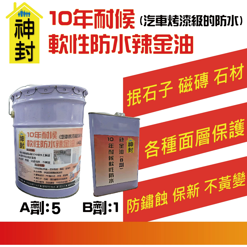 十年耐候軟性防水辣金油 (5加侖)/組